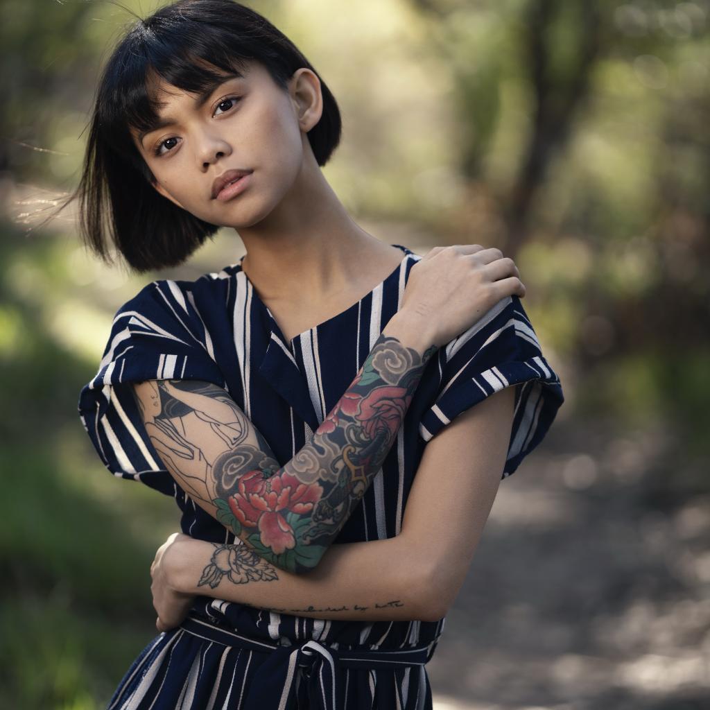 Wallpaper Beautiful Asian girl with tattoos in her arms