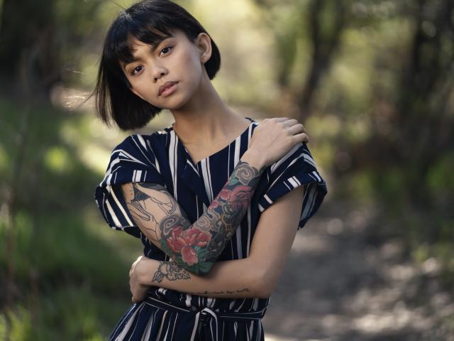 Wallpaper Beautiful Asian girl with tattoos in her arms