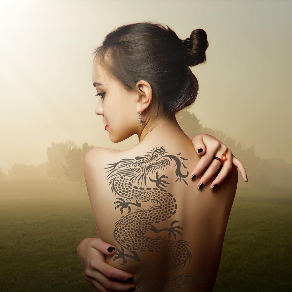 Wallpaper Beautiful girl with a dragon tattoo on her back