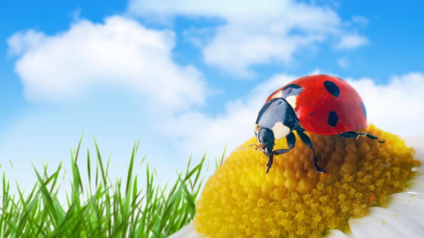 Wallpaper Ladybird on the yellow middle of a flower, macro
