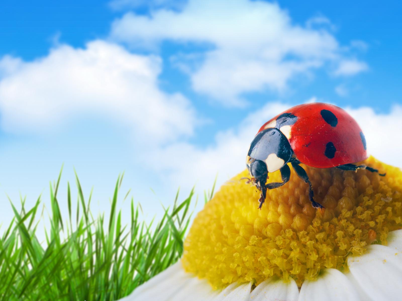 Wallpaper Ladybird on the yellow middle of a flower, macro