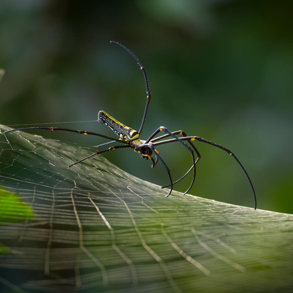Wallpaper Spider with long paws on a spider web macro