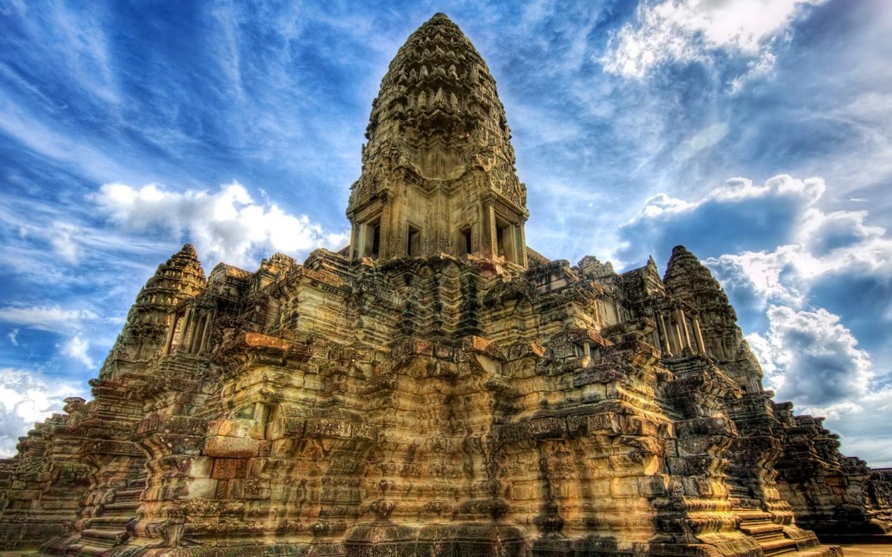Wallpaper Angkor Wat in Cambodia against the blue sky