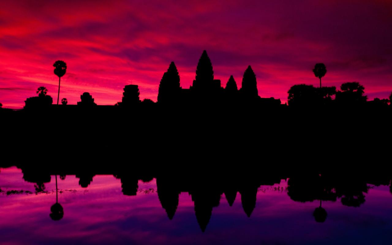 Wallpaper Towers of Angkor Wat at sunset sky background