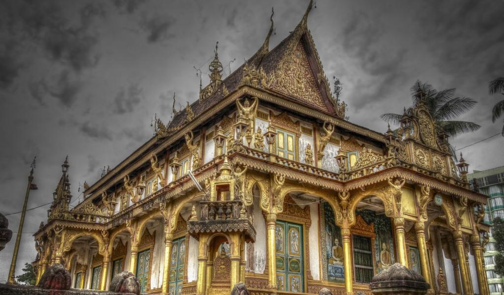Wallpaper Temple in the city of Phnom Penh, Cambodia