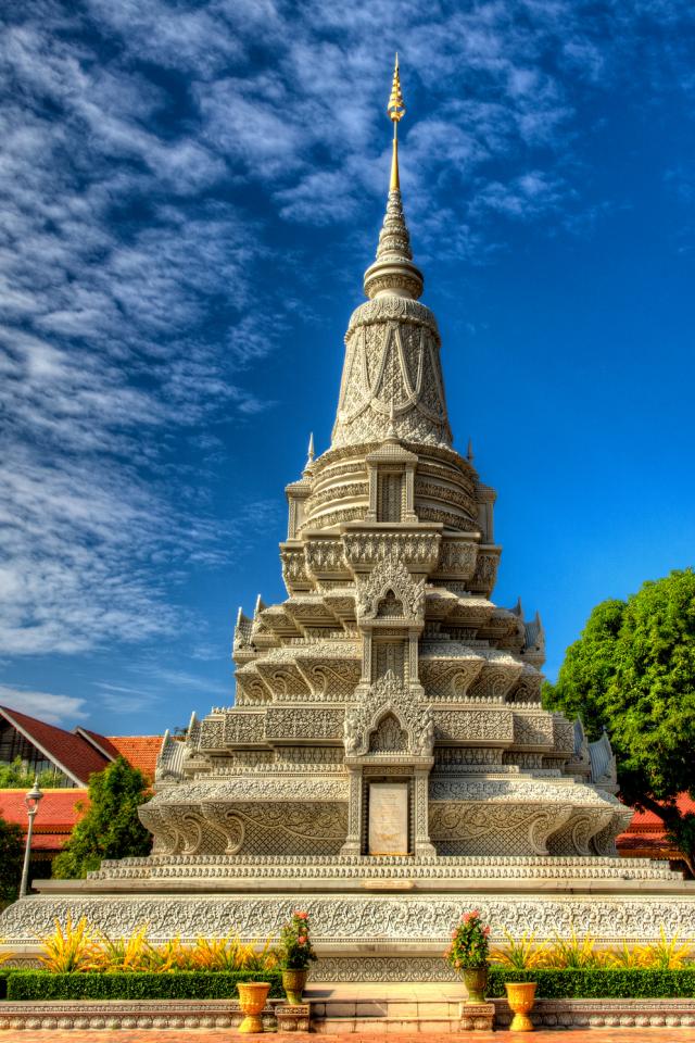 Wallpaper Temple of the Silver Pagoda on the background of blue sky, Cambodia
