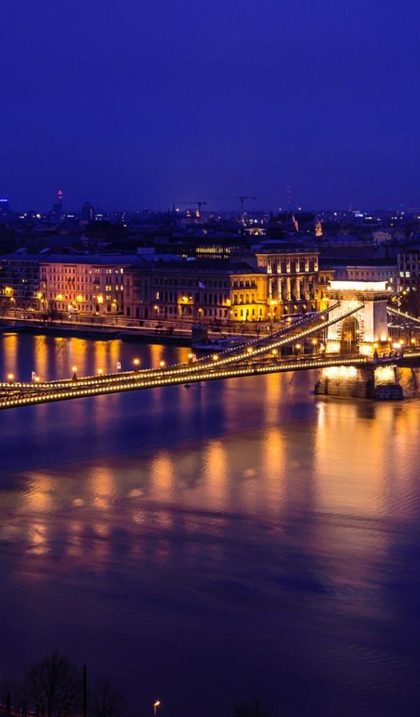 Wallpaper View of the night Chain Bridge, Budapest