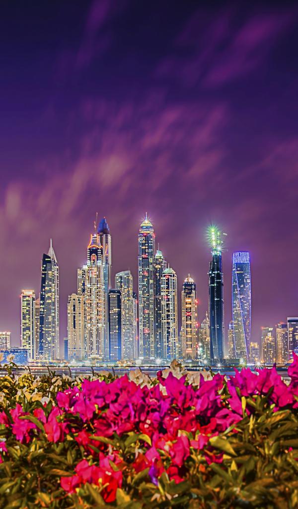 Wallpaper View of night skyscrapers in Dubai