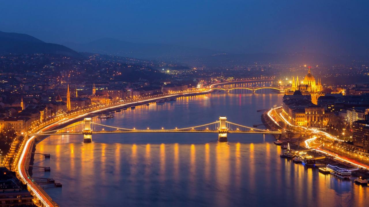 Wallpaper View of the Budapest night city and the Danube river, Hungary