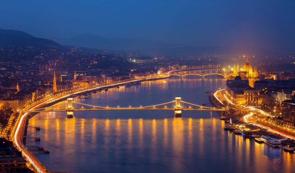 Wallpaper View of the Budapest night city and the Danube river, Hungary