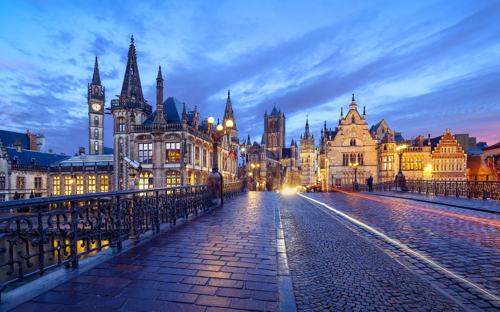 Wallpaper Bridge and old houses in Ghent, Belgium