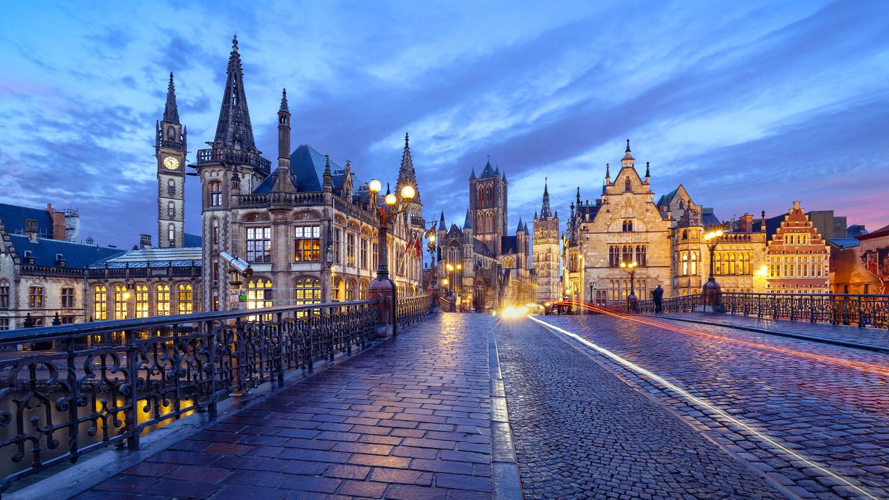Wallpaper Bridge and old houses in Ghent, Belgium