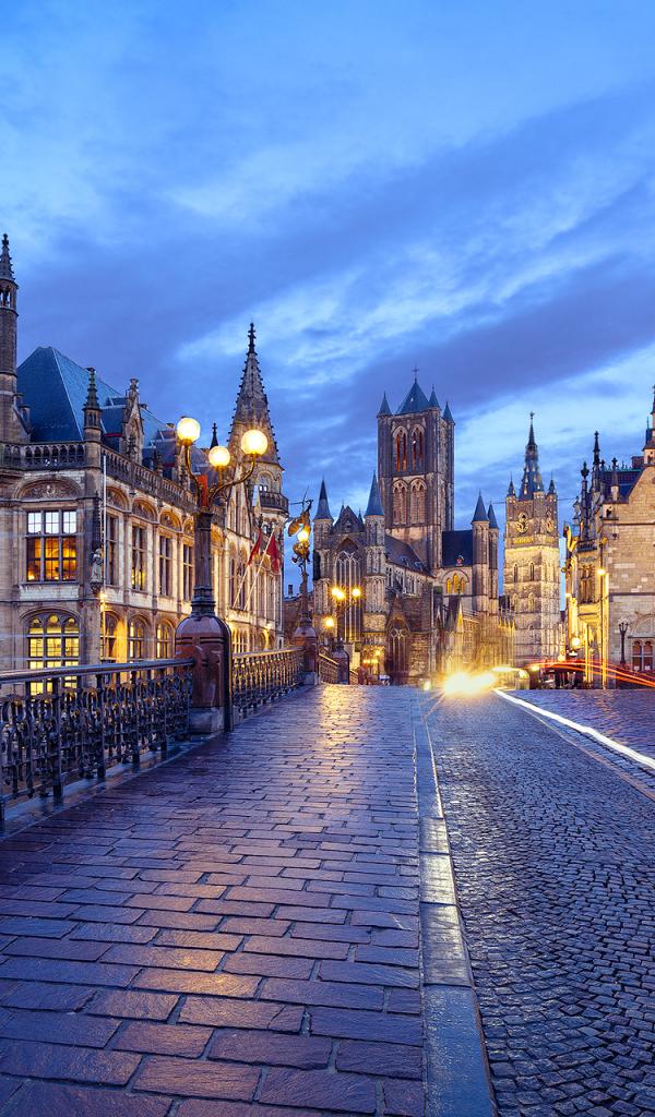 Wallpaper Bridge and old houses in Ghent, Belgium