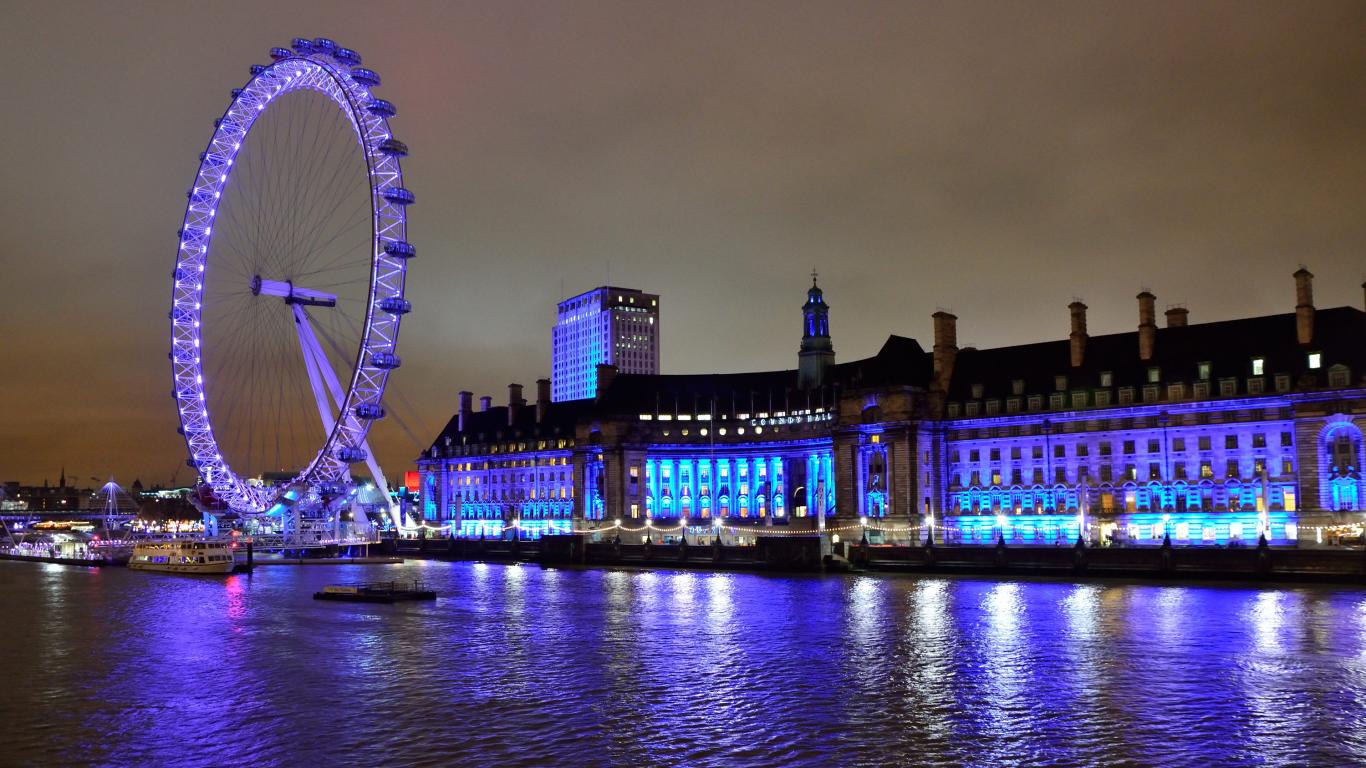 Wallpaper Ferris wheel by the water at night, London