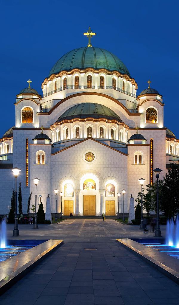 Wallpaper Fountains near the Temple of Saint Sava in the evening, Belgrade. Serbia