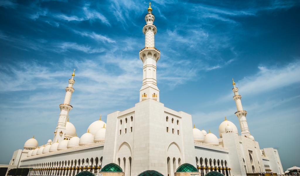 Wallpaper White mosque under a beautiful blue sky