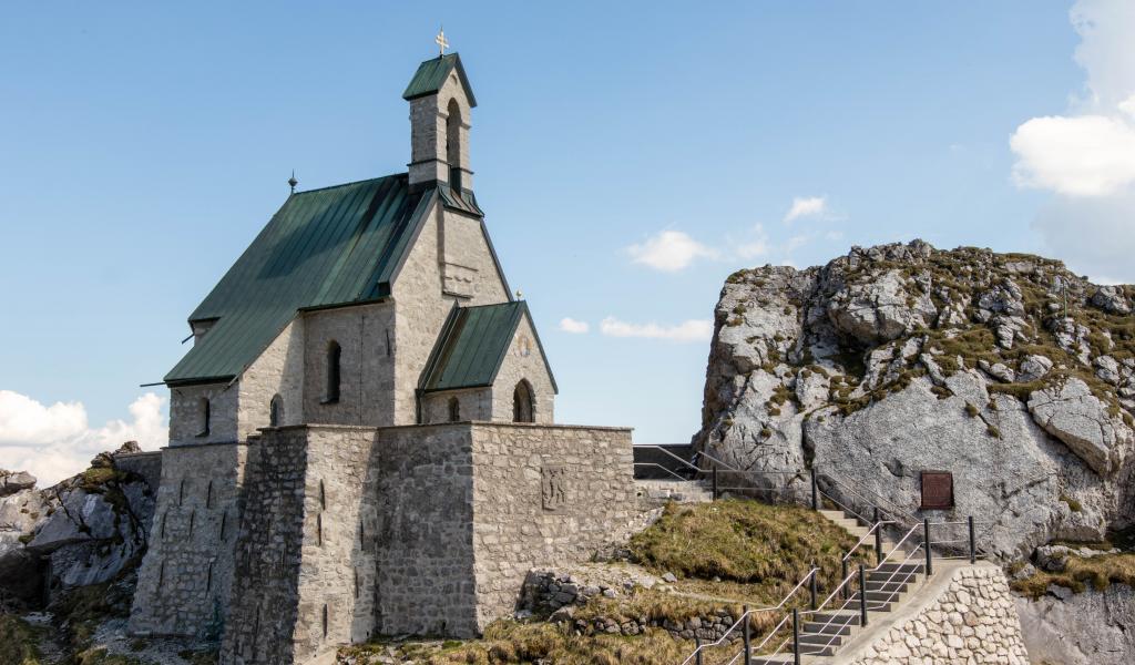 Wallpaper Old church on a rock under a blue sky
