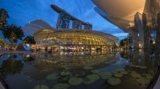 Wallpaper Marina Bay Sands Hotel in the evening, Singapore. Asia