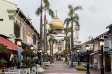 Wallpaper Street with houses and views of the temple, the city of Singapore. Asia