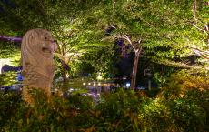 Wallpaper Large fountain in the shape of a lion in a scenic park, Singapore Asia