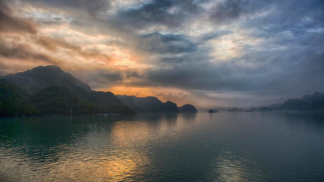 Wallpaper Sunset in Halong Bay, Vietnam