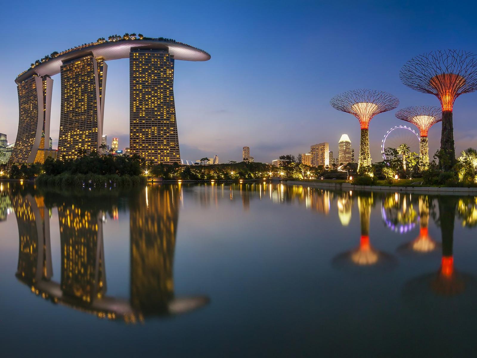 Wallpaper View of the night hotel Marina Bay, Singapore