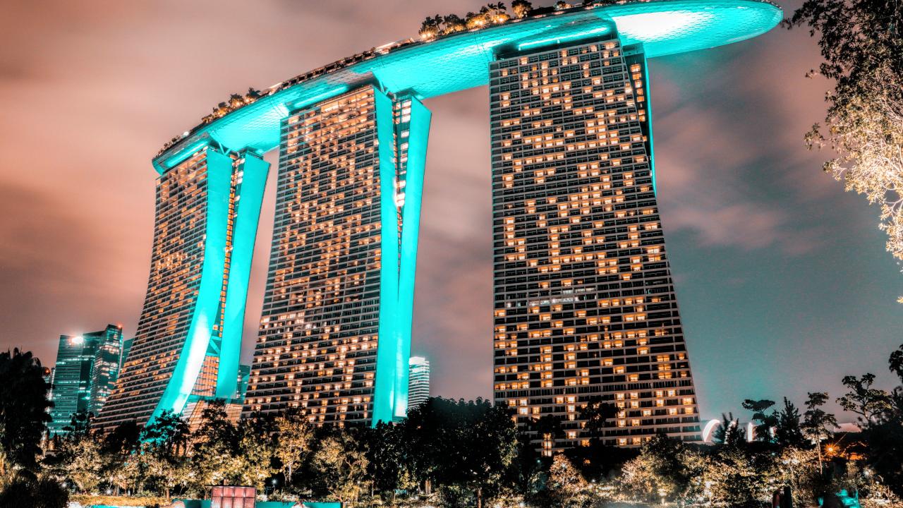 Wallpaper Marina Bay Sands Hotel in the evening, Singapore. Asia