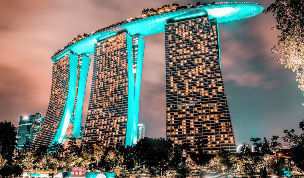 Wallpaper Marina Bay Sands Hotel in the evening, Singapore. Asia