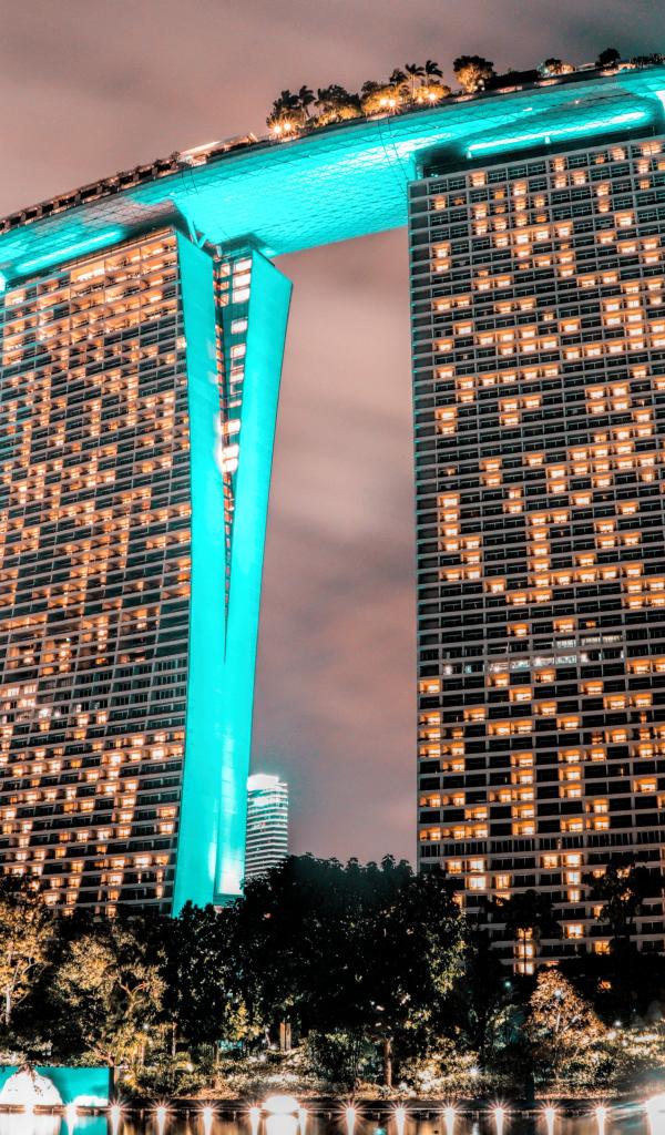 Wallpaper Marina Bay Sands Hotel in the evening, Singapore. Asia