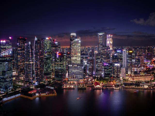 Wallpaper Skyscrapers of night Singapore by the water, Asia