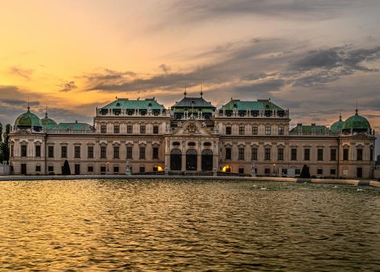 Wallpaper Old building by the water at sunset, Austria