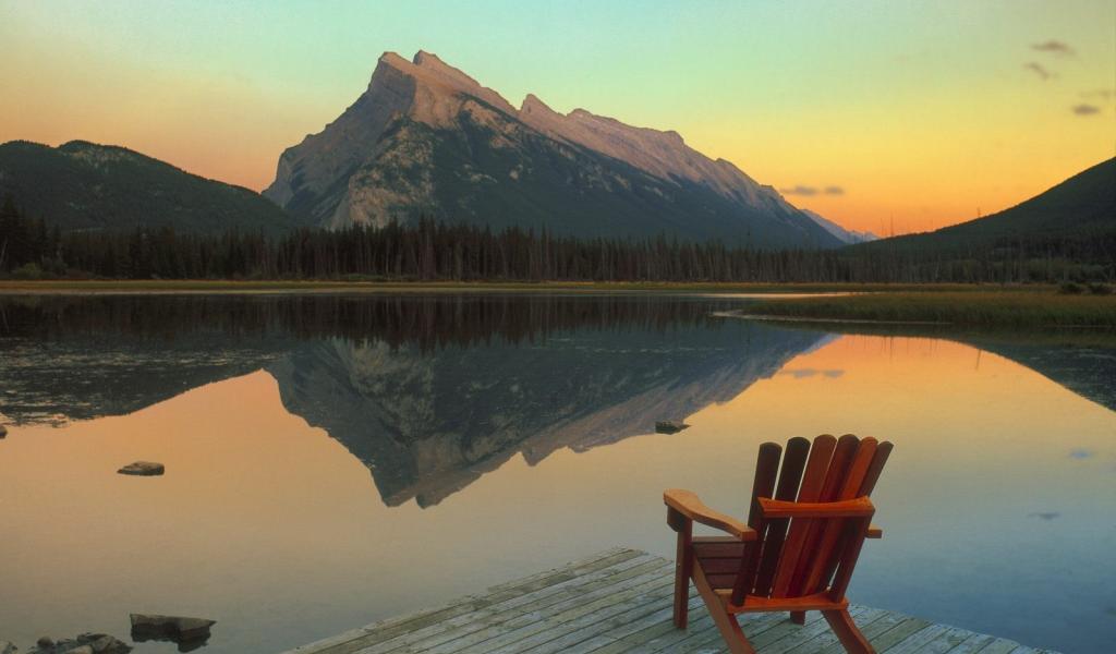 Wallpaper Chaise lounge on the lake, Banff, Canada