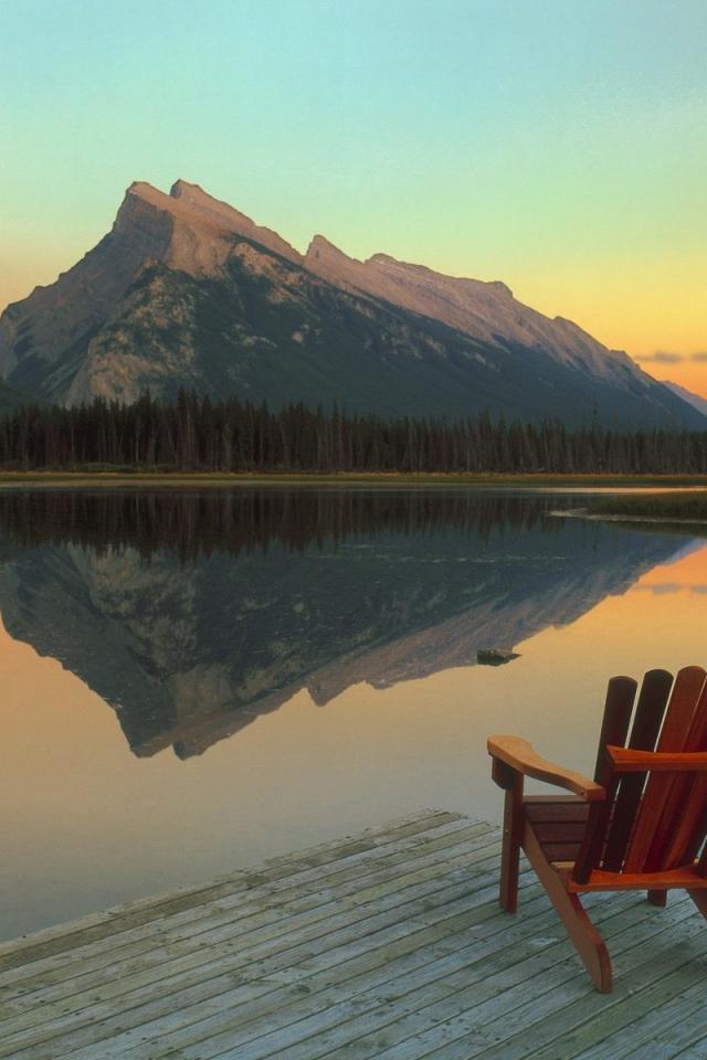 Wallpaper Chaise lounge on the lake, Banff, Canada