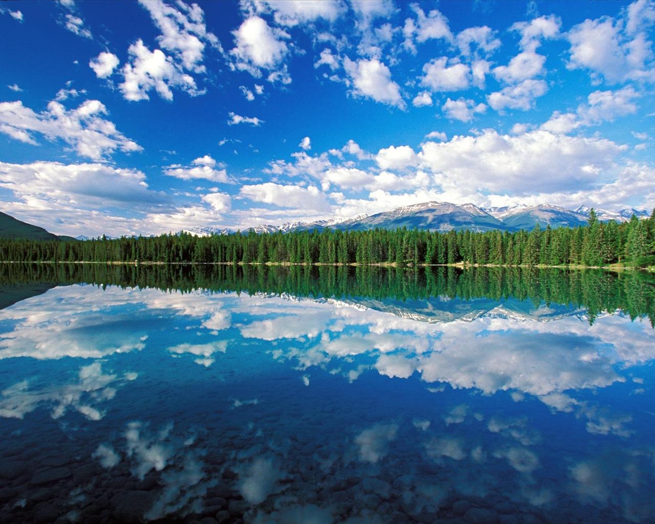 Wallpaper Clouds reflected in the lake in Jasper National Park, Canada