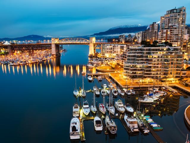 Wallpaper Boats at the pier against the night lights of Vancouver, Canada