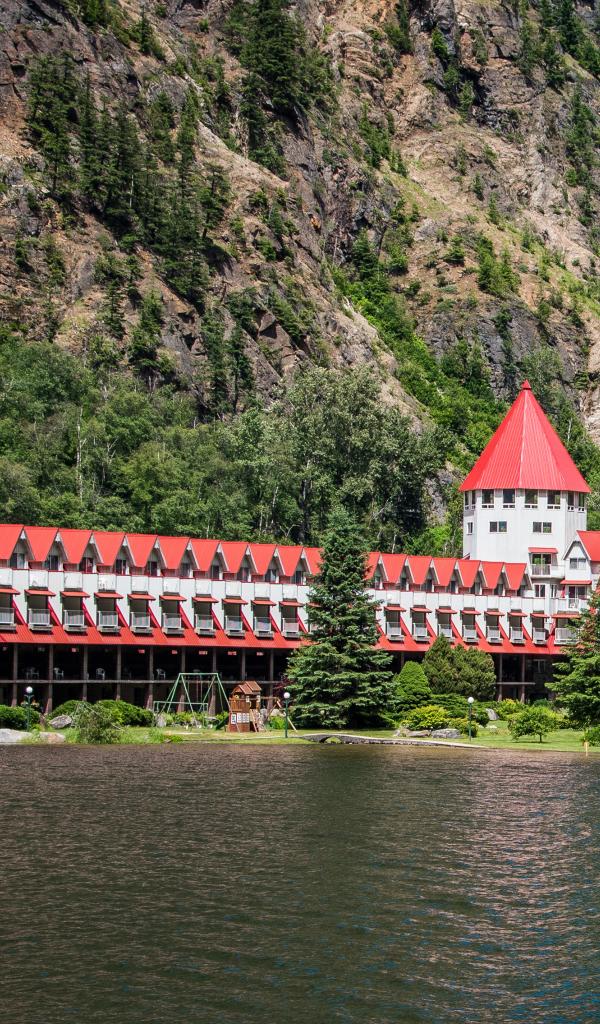 Wallpaper Big hotel by the water in the mountains, Canada