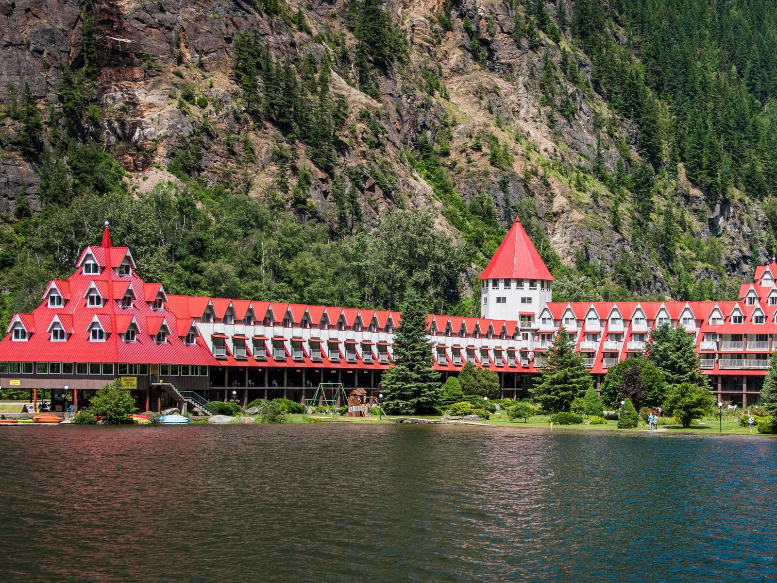 Wallpaper Big hotel by the water in the mountains, Canada