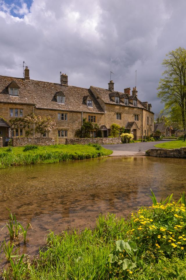 Wallpaper House by the lake with green grassy shores, England