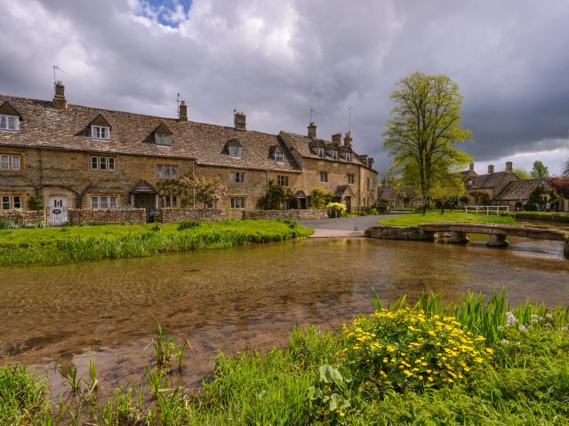 Wallpaper House by the lake with green grassy shores, England