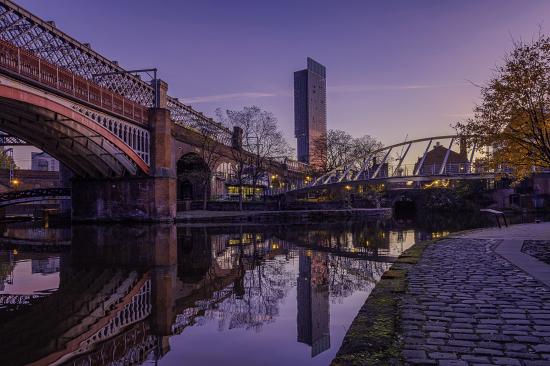 Wallpaper Bridge over a river in England in the evening