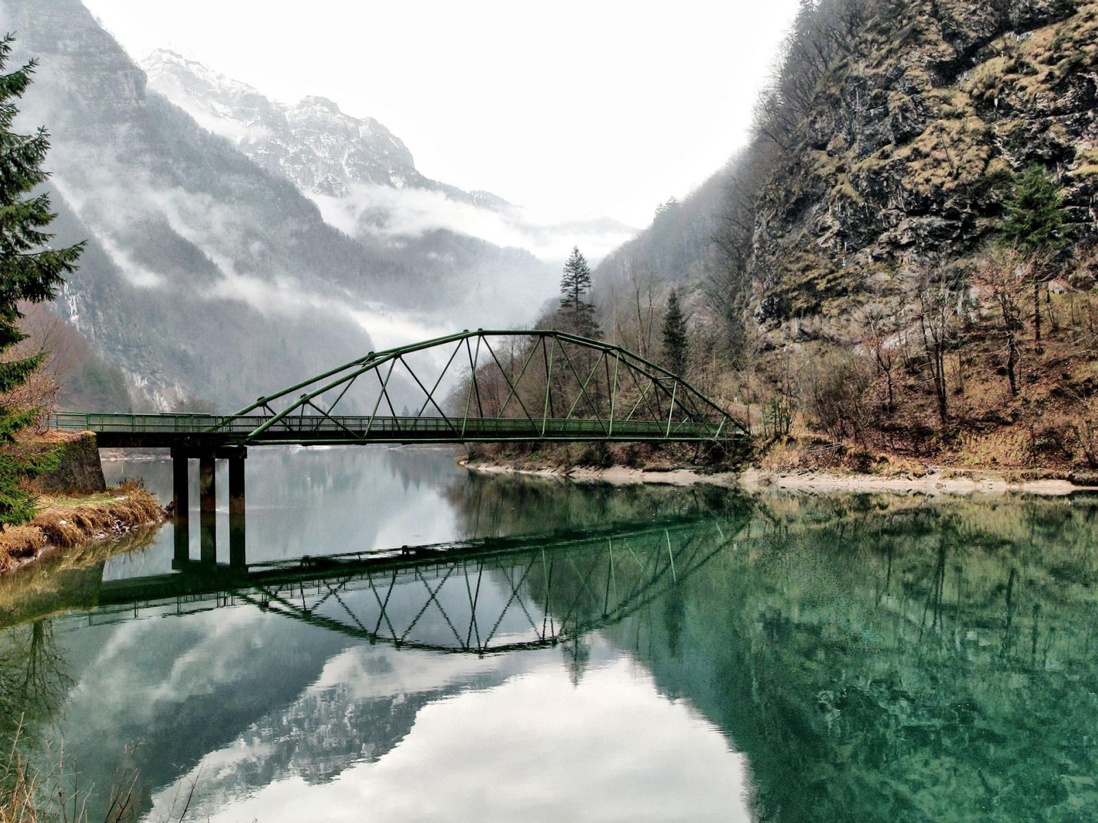 Wallpaper The bridge on the river in the mountains, France