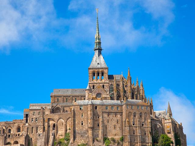 Wallpaper Island fortress Mont Saint Michel against the blue sky, France