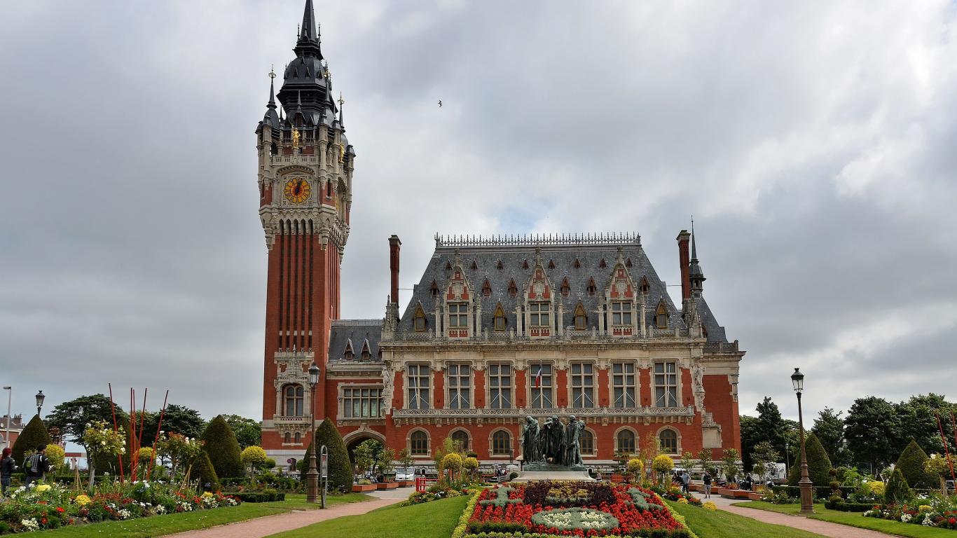 Wallpaper Beautiful lawn at the Hotel de Ville in Flemish, France
