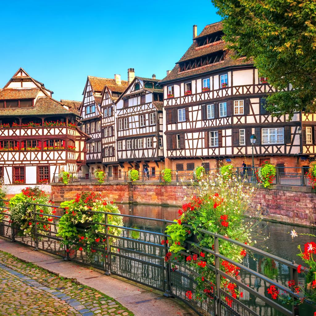 Wallpaper Beautiful houses by the river in Strasbourg, France