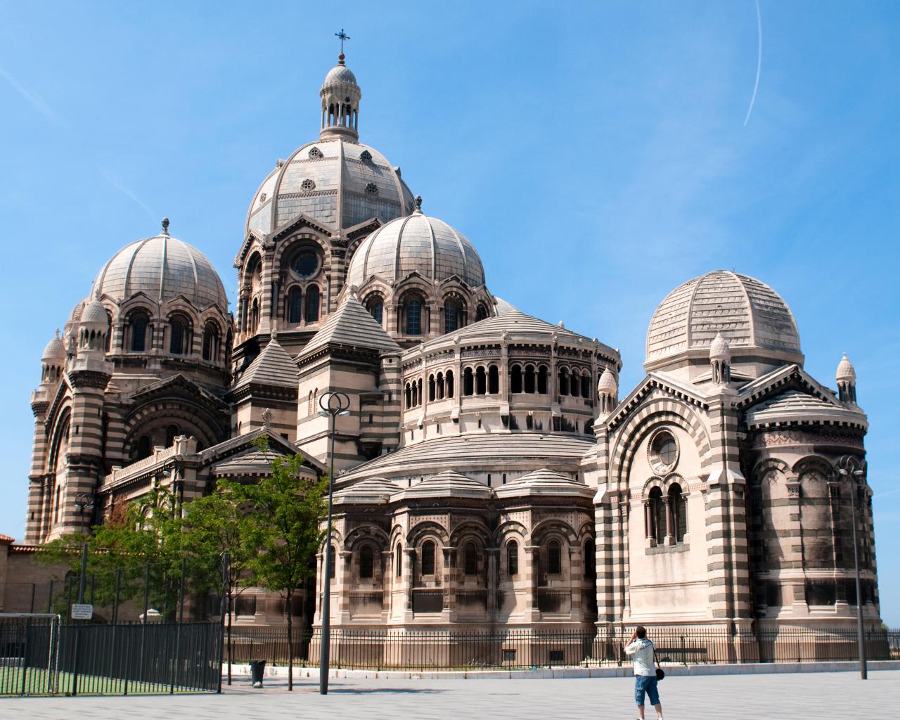 Wallpaper Cathedral of Marseilles under the blue sky, France