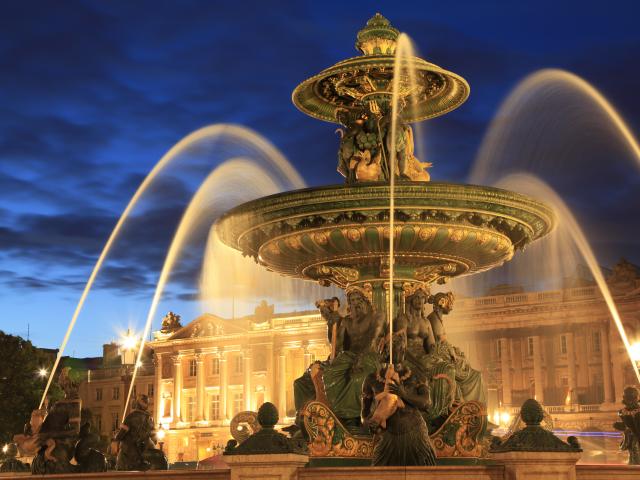 Wallpaper Fountain on the Place de la Concorde in the evening, Paris. France