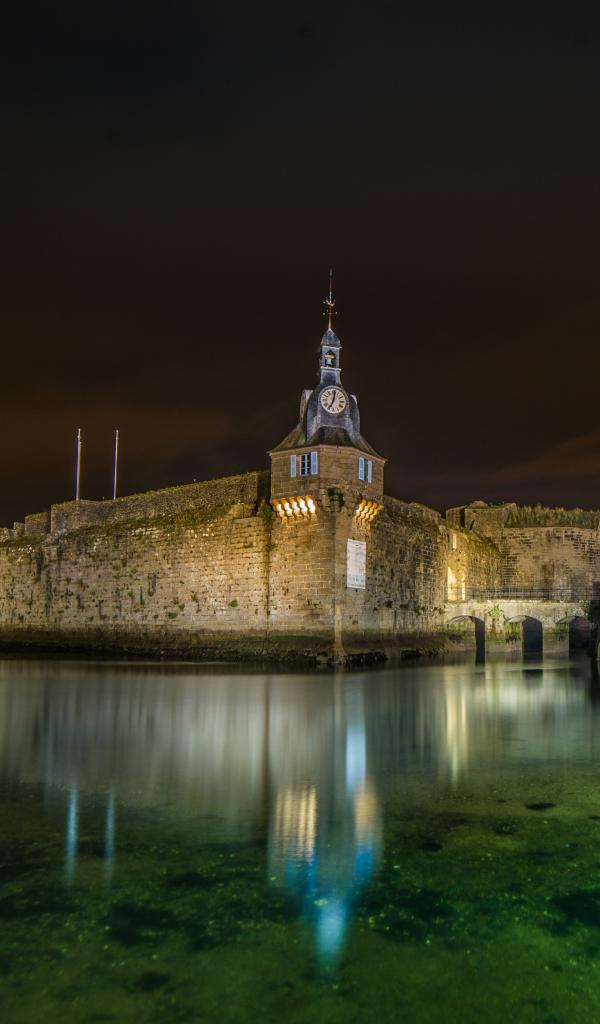 Wallpaper Fortress by the water at night, commune Concarneau. France