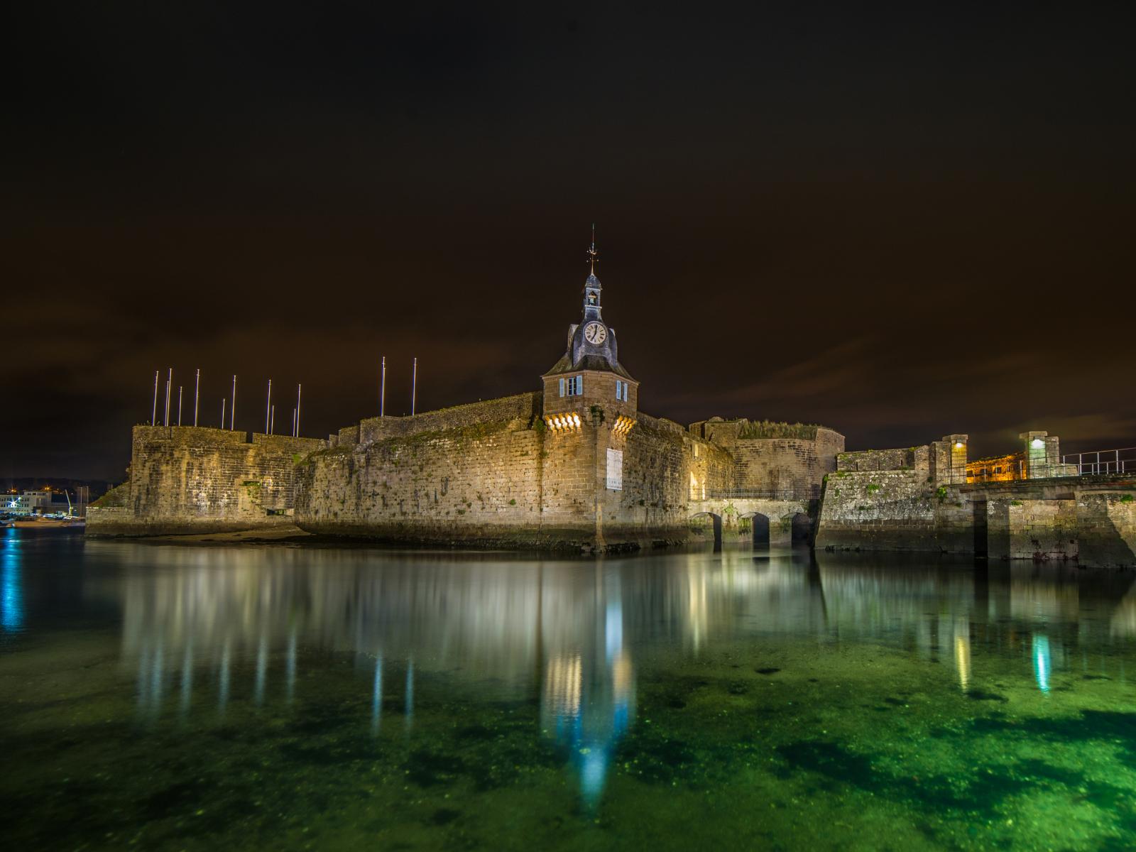 Wallpaper Fortress by the water at night, commune Concarneau. France