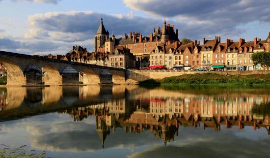 Wallpaper Large house is reflected in the river near the bridge, France