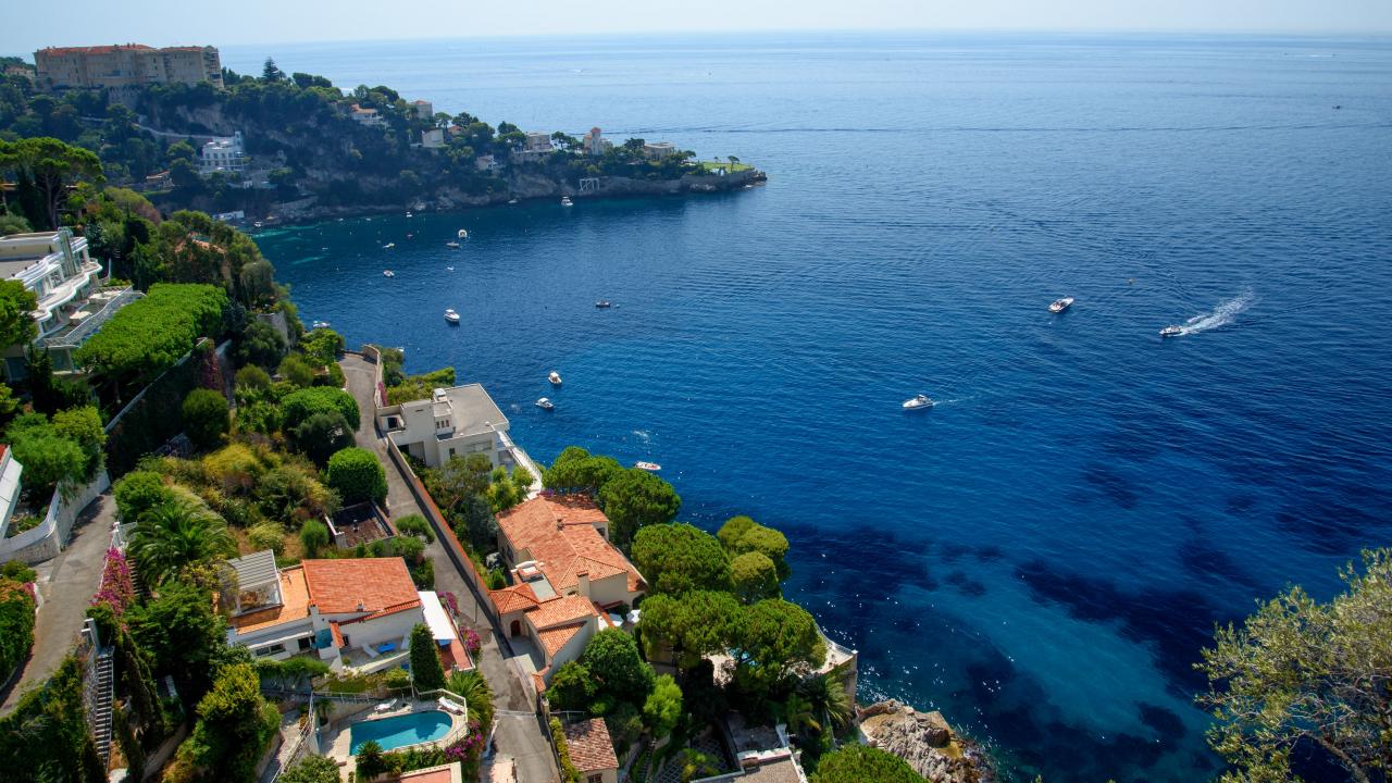 Wallpaper View of houses on a hill by the bay, France